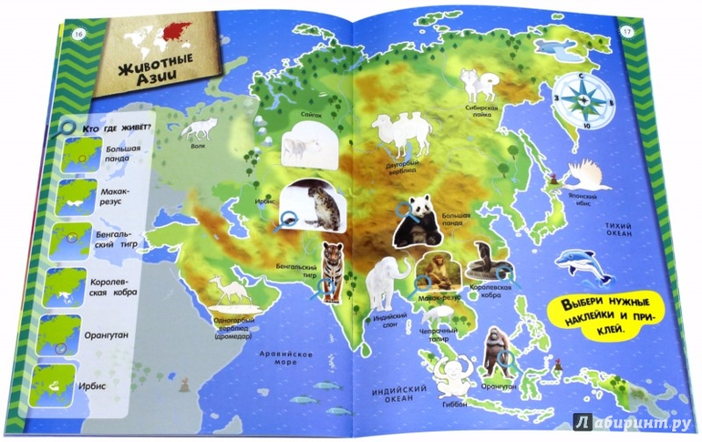 Множество ярких наклеек сделают твое путешествие по лесам, пустыням, морям и океанам еще интереснее!