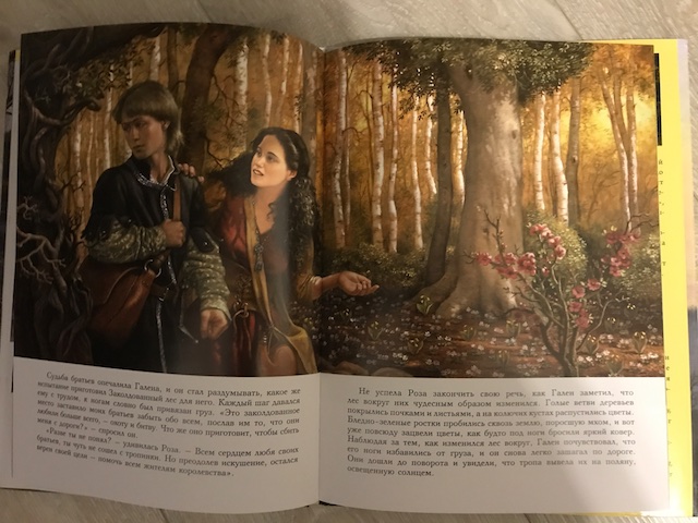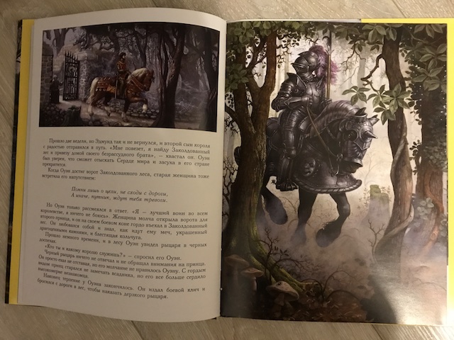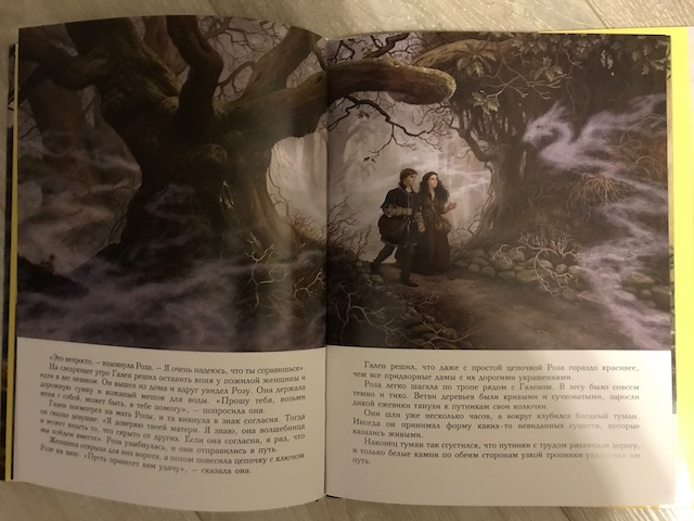 Честно скажу, меня эта книга разочаровала. Иллюстрации по фото в Лабиринте представлялись более яркими и четкими. Например, на первой страничке, где должен быть контраст между тем, как все выглядело в королевстве раньше, и как стало, разница не явно видна: цветовая гамма иллюстраций почти одинаковая.