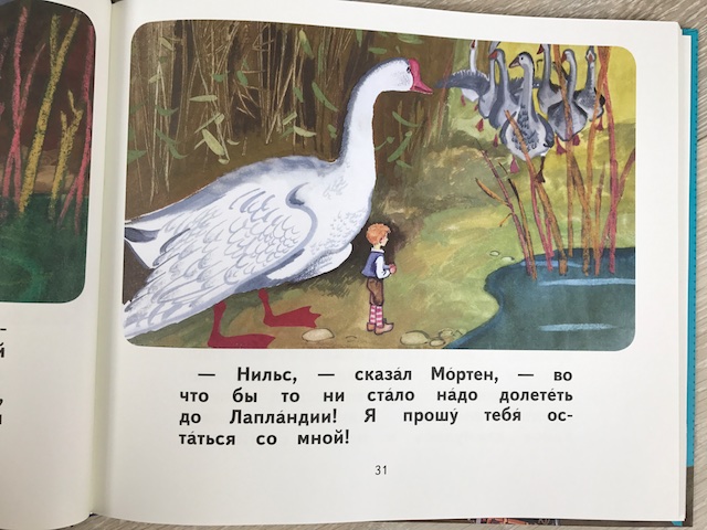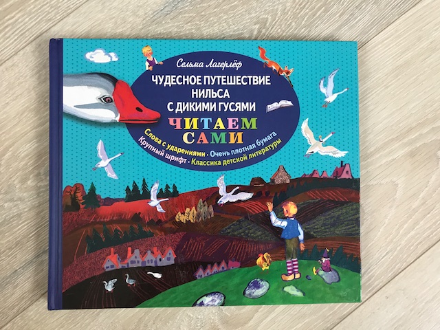 Одна из любимых сказок моего детства, неудивительно, что я не представляла без нее нашу библиотеку. Выбирая экземпляр для Насти, я остановилась на серии "Читаем сами". Неоднократно про нее рассказывала, у нас уже довольно много книжек набралось. Когда я заказывала "Нильса", отзывы не прочитала и на то, что текст сокращен, не обратила внимание. В итоге, книга оказалась не совсем той, что я ожидала. Для самостоятельного чтения начинающим читателям она идеальная: текст крупный, всего по несколько строчек на странице, на каждом развороте по две иллюстрации, ударения проставлены. Для чтения взрослым детям не подходит совершенно: это схематичный пересказ настоящего произведение Лагерлеф. Про иллюстрации на Лабиринте отзываются не очень положительно, а мне понравились, по-моему отлично подходят этой сказке.