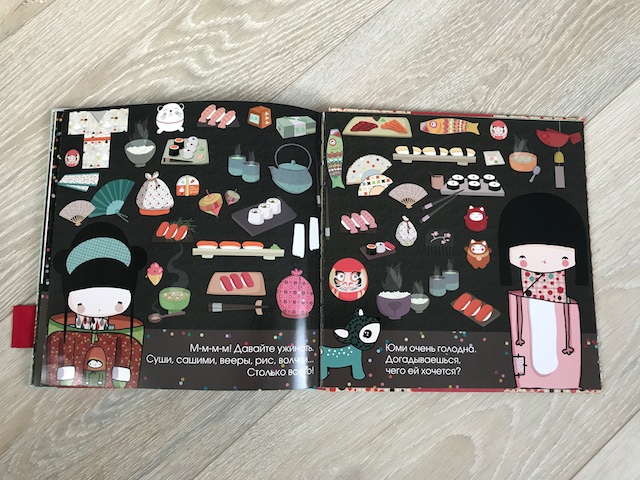 Я помню, что рассказывала про книгу Аннелор Пиро "Юми" и отнесла ее к не самым удачным покупкам, я когда-то поддалась всеобщему ажиотажу. Так вот, рано было судить: книга оказалась у Насти очень долгоиграющей и любимой! Дочка часто достает и "читает" ее сама близко к тексту, и меня нередко просит ей почитать. С удовольствием выполняет все "задания", уже давно запомнила используемые в книге японские слова. В общем, в противовес моему первому впечатлению сейчас могу сказать, что книга удачная для девочек-дошкольниц. И я надеюсь, что она еще послужит для самостоятельного чтения: шрифт крупный, четкий, есть буква ё.