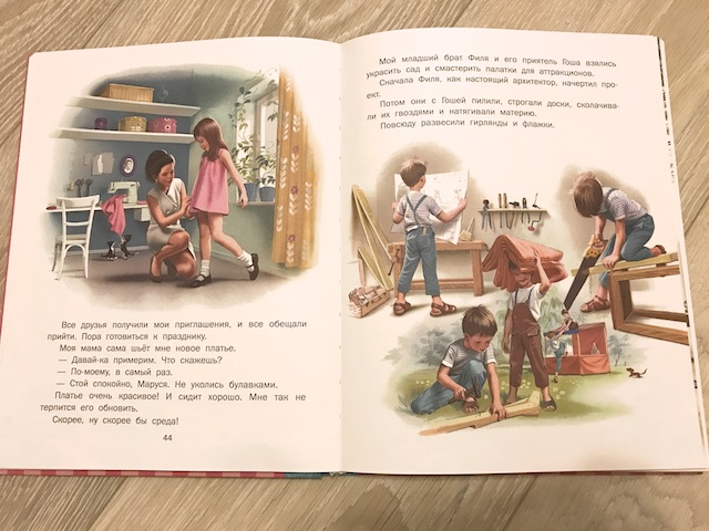 В каждом дневнике мелькают у нас книжки про Марусю, но что поделать, дочкина любовь к ним не ослабевает. Просит читать ей снова и снова. Разные истории становятся любимчиками, потом отходят на второй план, снова вспоминаются… Летом опять достали с полки и постоянно перечитываем "Новые приключения Маруси".