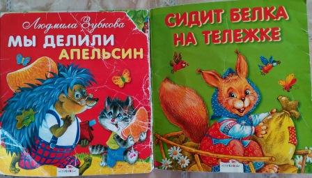 Вот первая книга, которую Вовка ПОПРОСИЛ прочитать. «Мы делили апельсин». Ему тогда ещё не было года. Я читала и читала ее, по 20 раз подряд. Ну и «Сидит белка на тележке». Это вторая «первая» книга.