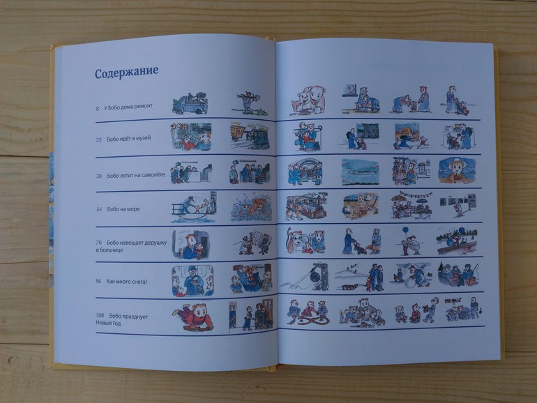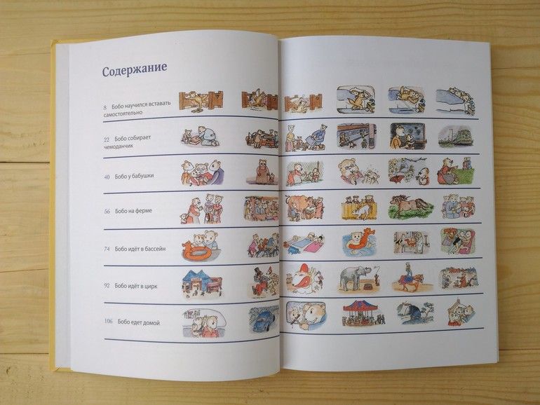 Кстати, обратили внимание, как необычно здесь оформлены содержания? Можно вместе с малышом выбрать, о чем будете читать. Ну это в идеале. Потому что в реальности, мы опять же читаем его в основном за раз от корки до корки. Опять 125 страниц.