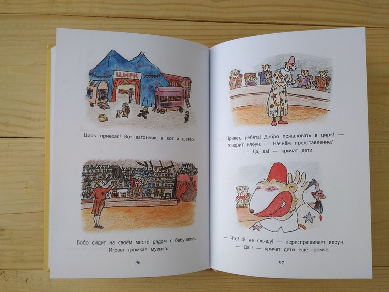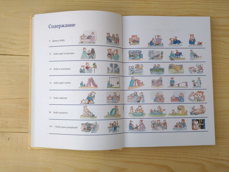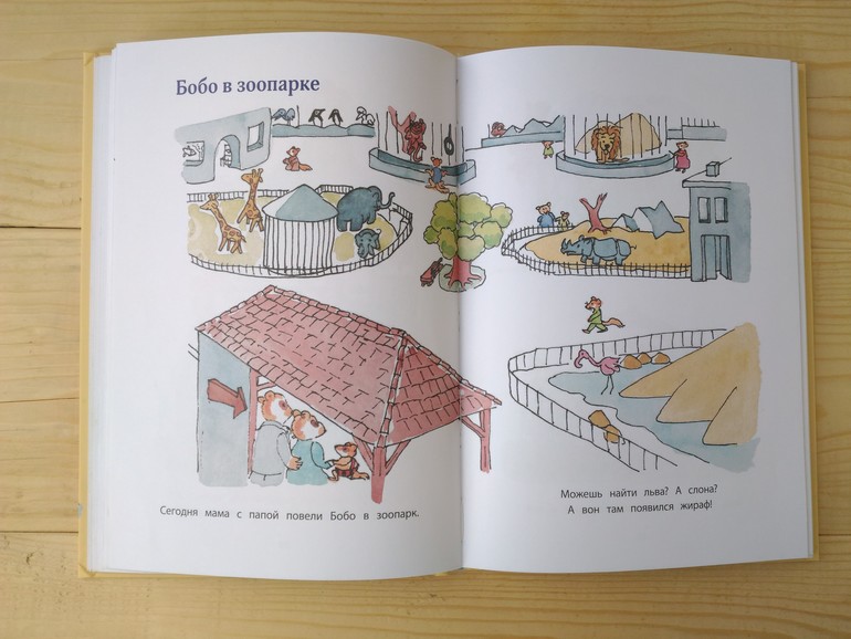 Несмотря на сюжетную простоту рассказов о Бобо, все они носят дидактический характер. Каждая мини-история достаточно подробно охватывает какую-либо лексическую тематику: зоопарк (здесь подробно даются животные), поход за покупками (тут и супермаркет, и виды товаров, и специализированные лавки) и т.д. Здесь есть и небольшие конкретные задания на поиск. Их немного, но по аналогии можно задавать вопросы и самим: