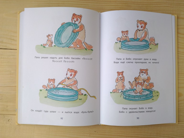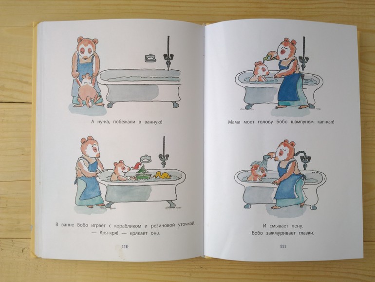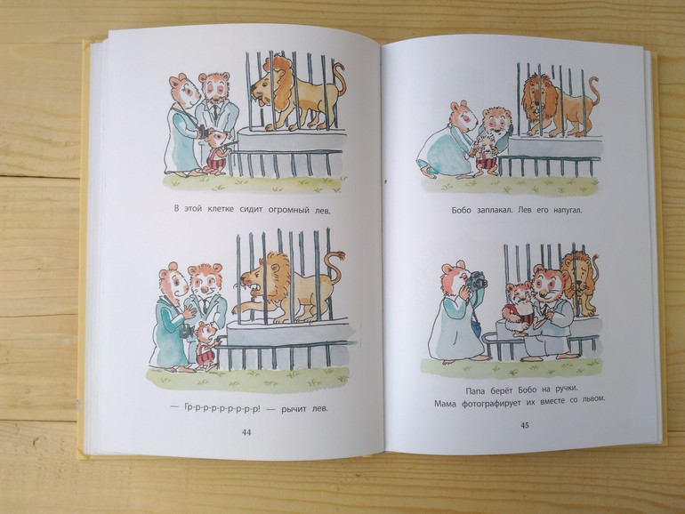 Кроме того, даже без этих заданий, в самом процессе чтения Марго очень многому научилась у Бобо. Во-первых, само имя Бобо было у нее чуть ли ни одним из первых слов. Затем она абсолютно непринужденно выучила сама все звукоподражания, встречающиеся в книге: от рыка льва...