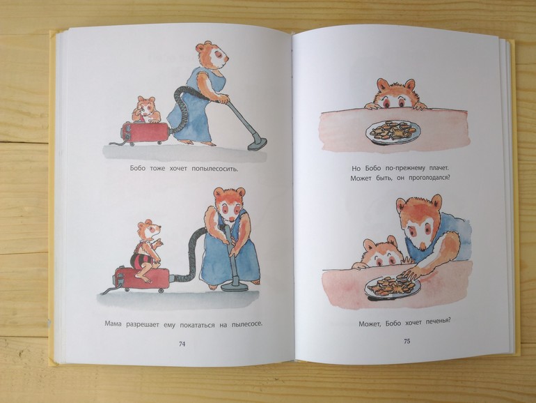 У нас нет книг о Карлхене, но по тому, что я видела в обзорах, мне они очень напомнили Бобо. Я читала, что раньше Карлхен тоже издавался сборником историй, но на волне популярности его разделили на картонки и стали продавать каждую мини-историю по цене сборника. В общем-то толстенький томик Бобо и сейчас по цене сопоставим с одним рассказом о Карлхене.