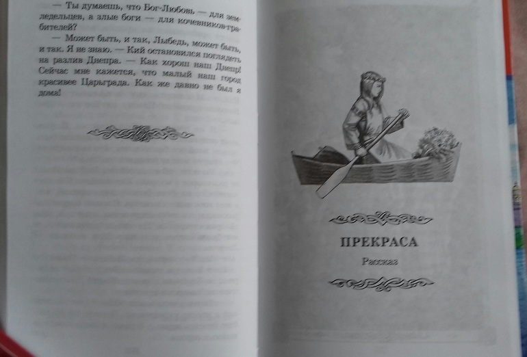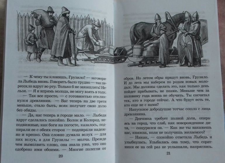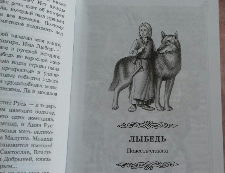 В ней содержится повесть-сказка "Лыбедь" о правлении в Киеве в силу отсутствия старших братьев Кия, Щека и Хорива маленькой девочки, княжны Лыбеди. Конечно, это сказка: во-первых, есть сомнения в реальности этих персонажей, а тем более, в возможности правления маленькой девочки, а во-вторых, имеются по-настоящему сказочные эпизоды: сама земля русская помогает княжне выбраться из подземелья, а ее верный слуга может перекидываться в волка. Но, на мой взгляд, вся жизнь Древней Руси для нас неотделима от сказок и легенд, поэтому такой ход автора вполне логичен.