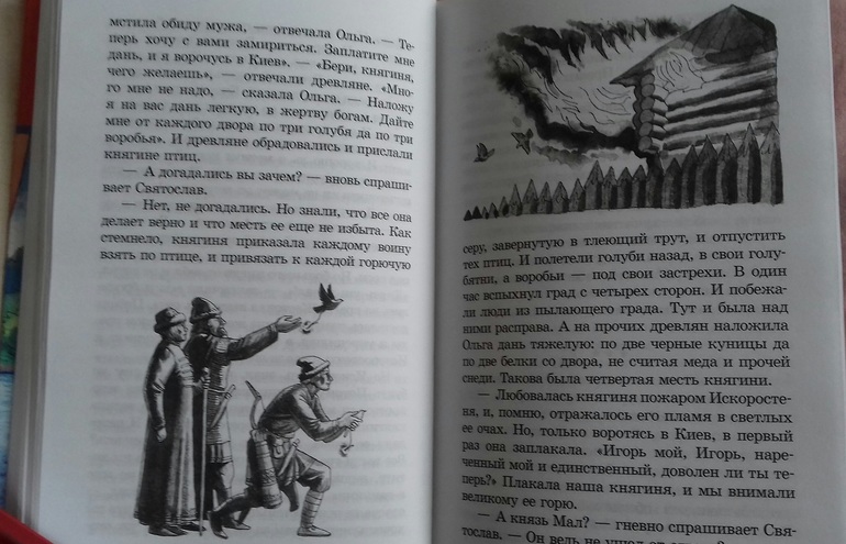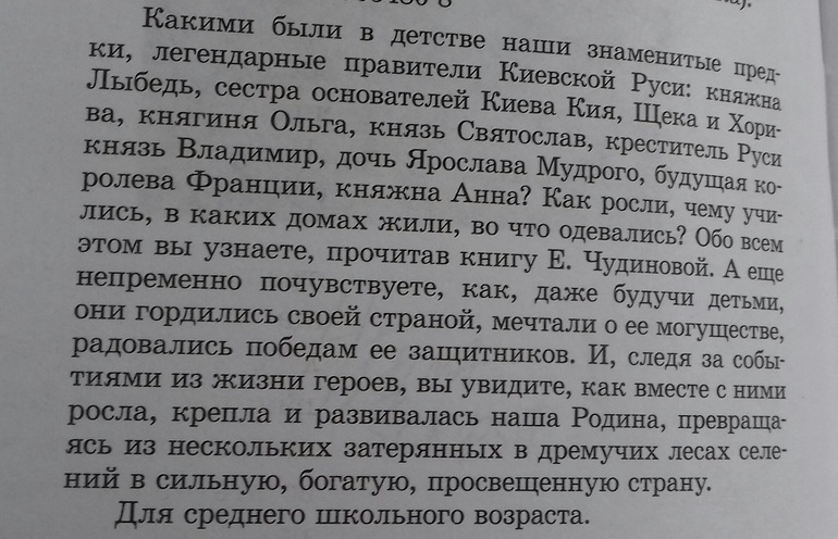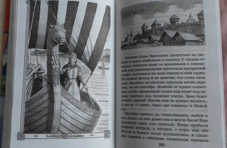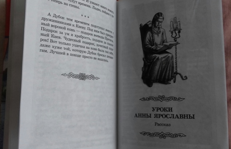 И последний рассказ - "Уроки Анны Ярославны" - о маленькой Анне, ставшей потом королевой Франции. Он подводит своеобразный итог всей книге, поскольку в нем, отвечая урок своему учителю, Анна и ее братья вспоминают все исторические события, описанные в предыдущих рассказах, помогая и юным читателям повторить и систематизировать их у себя в голове)