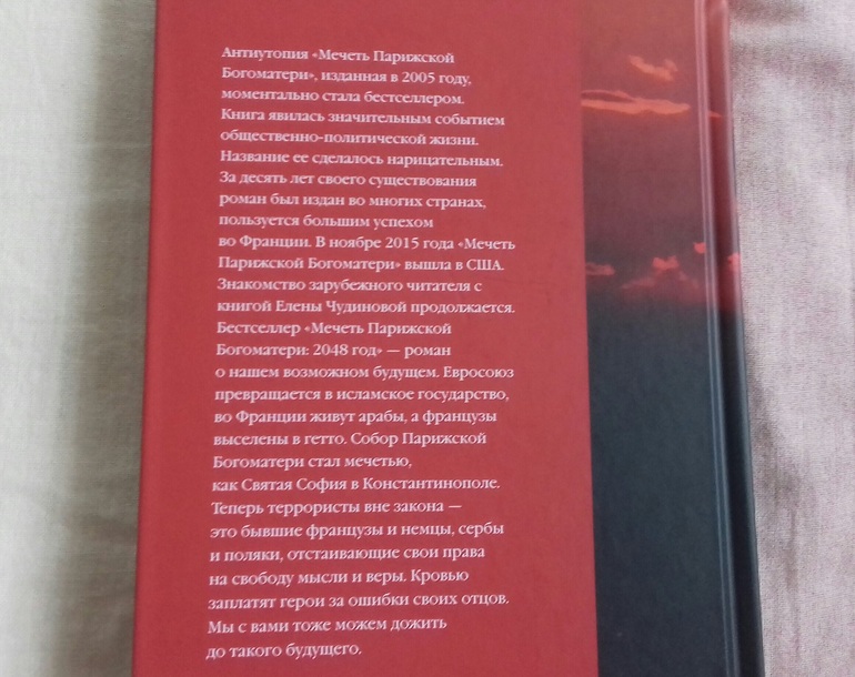 И - чисто взрослый , нашумевший роман-антиутопия "Мечеть Парижской Богоматери". Это книга 18+, поскольку содержит очень жестокие сцены: убийства, пытки и т.д.