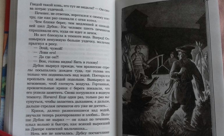 И здесь же - рассказ о подвиге киевского отрока, спасшего Киев от печенегов, окруживших город( помните,он пробрался через их лагерь, переплыл Днепр и привел подмогу?)