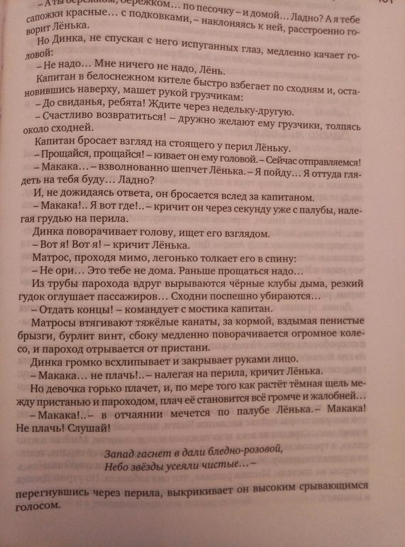 Вообще по сюжету Динке много расставаний предстоит пережить, и очень горько она их переносит.. она книги с плохим концом то не может читать, одну даже порвала в гневе и бессилии... и стала сама переделывать плохие места на хорошие..