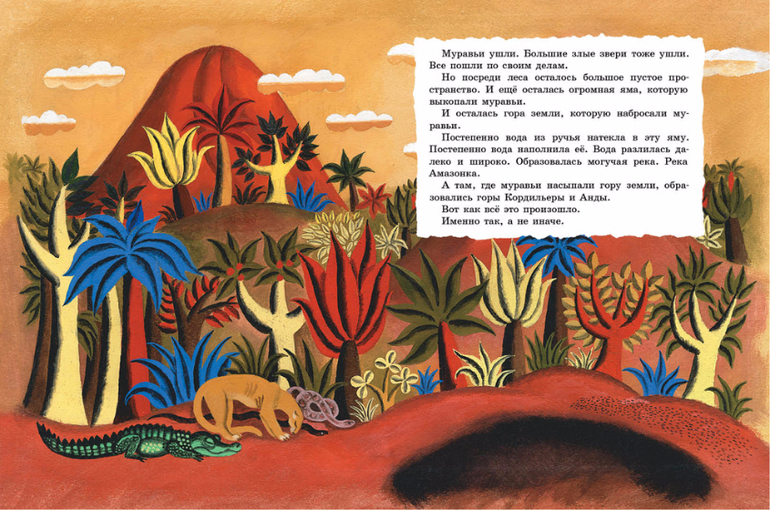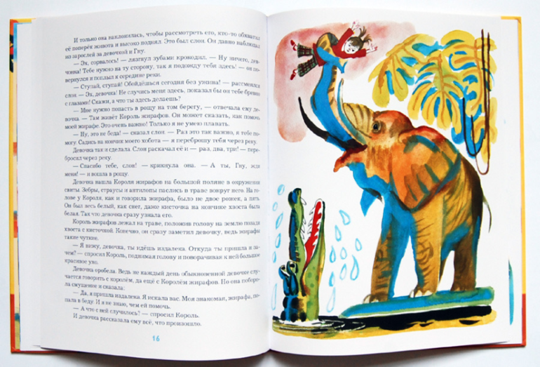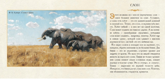 На страницах книги буйствуют сочные краски - пурпурная саванна, циановые джунгли. Иллюстрации дивной красоты, целую Вселенную, населенную грациозными животными, нарисовал художник Давид Хайкин (1927-2008).