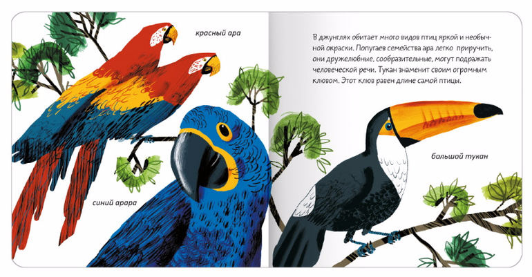 Здесь живет самая крупная змея, растет самый большой цветок и летает самая крупная бабочка. В джунглях всегда тепло и влажно. Почему ленивец такой медлительный, зачем муравьеду длинные когти, почему маленькую желтую лягушку называют ужасной? Познакомьтесь с обитателями джунглей, удивительными животными и птицами.