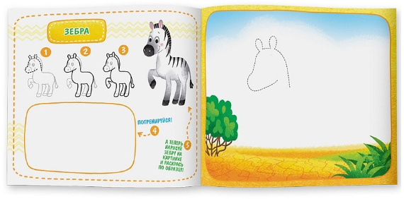 Хотите научить детей рисовать удивительных животных Африки? Поверьте, это не так уж сложно. Главное, шаг за шагом следовать советам, которые вы найдете в книжке серии «Рисовалка». Всего 5 шагов и рисунок готов!