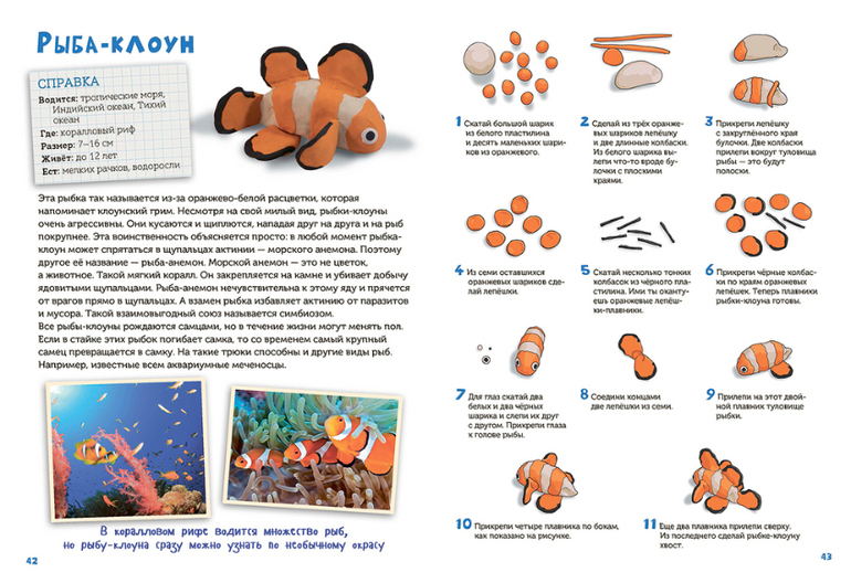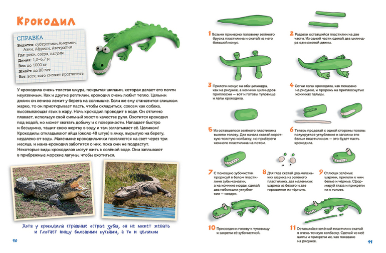 Открой эту замечательную книгу и начни путешествие по морям и континентам нашей планеты. И за время своей кругосветки ты узнаешь много интересного. Над кем смеётся рыбка-клоун? Как высоко прыгает кенгуру? Так ли уж ленив ленивец? И кого же всё-таки боится царь зверей? А чтобы вернуться домой не с пустыми руками, слепи самых интересных животных из пластилина. Поверь, с нашей книгой сделать это очень просто. Читай, играй, узнавай и твори мир своими руками.