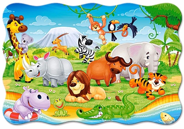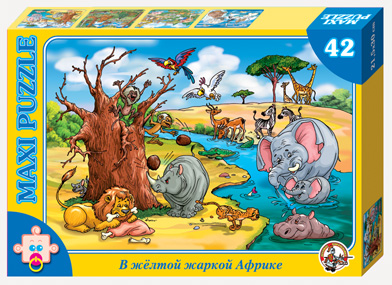 Внимание ребенка привлекают карточки с интересной информацией и заданиями, выполняя которые, игроки совершают увлекательное путешествие по игровому полю. В процессе игры участники познакомятся с самыми известными животными Африки: львом, бегемотом, коброй, верблюдом и даже пингвином. Одни животные помогут путешественнику, а другие могут задержать его в пути. Победит тот, кто первым сможет пересечь весь континент с севера на юг и дойдет до финиша.