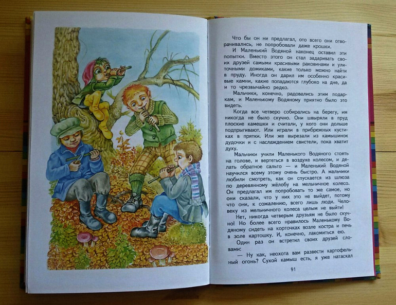Вот честно, перечитывать я ее не хочу, хотя под конец были главы, которые мне понравились. По ходу чтения дочка задавала безумное количество вопросов, что обычно свидетельствует о проявлении интереса к книге. Очень долго она пыталась понять как водяной дышит под водой, почему он заболел, когда его ноги стали совсем сухие и почему они едят такую гадость. Но потом приняла это как данность, заключив, что у них все ни как у людей.