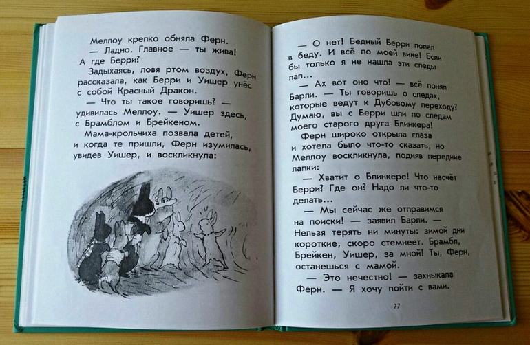 Да и темы в книге задеты ребенку пока непонятные. Хоть она и девочка, но любовь, одиночество, философские рассуждения и подготовка к свадьбе ее пока не интересуют, даже если это происходит с милыми кроликами. Сам текст тоже достаточно сложный. Много размышлений, описаний, этакий сериал с переживаниями и трагедиями на детский манер. Конечно, все закончилось хорошо и мне, взрослому человеку, читать было легко и понятно, а вот дочка откровенно скучала.