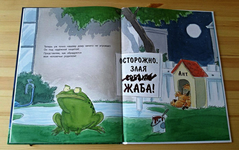 Дальше в ход пошли вставные клыки, выдуманная болезнь, парик хозяйки и даже накладной парик, а тут еще настоящий грабитель. Ситуацию спасла сварливая жаба, которой приглянулась лужа во дворе дома. Жабе так понравился новый пруд, что она решила остаться в нем жить и помогать охранять дом.