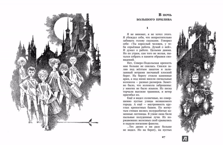 Трилогия Владислава Крапивина "В ночь большого прилива" тематически связана с основным циклом писателя "В глубине Великого Кристалла". Ещё одна книга о Пути. О Дороге, на которую предстоит вступить, если ты чист сердцем, если в тебе - во взрослом человеке - ещё живёт ребёнок. Главный герой трилогии - взрослый. То ли во сне, то ли наяву, рассекая пространство и время, он возвращается в детство, которое было. Или только могло быть? Два мира - настоящий, где героя ожидает маленький приятель Володька; и другой - полуфантастический, но неожиданно родной и близкий, где Валерка, Братик и барабанщики остро нуждаются в его помощи. Вечная проблема выбора. Выбора Пути…