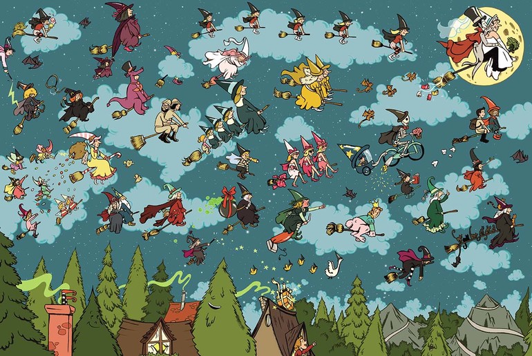 Как и любой виммельбух, «Весёлые ведьмочки» - это настоящее немое кино. Рассматривая книгу, дети научатся подмечать детали, находить логические связи между событиями, самостоятельно составлять рассказ по картинкам.