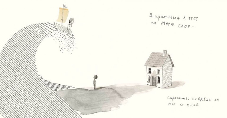 Маленькая девочка - дитя книг - плывёт на своём плоту по морю слов и попадает в дом мальчика. Девочка приглашает его вместе отправиться в путешествие по миру историй… где может случиться всё, что угодно, стоит только это вообразить.