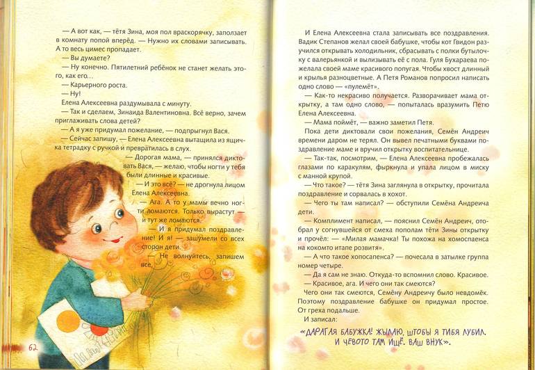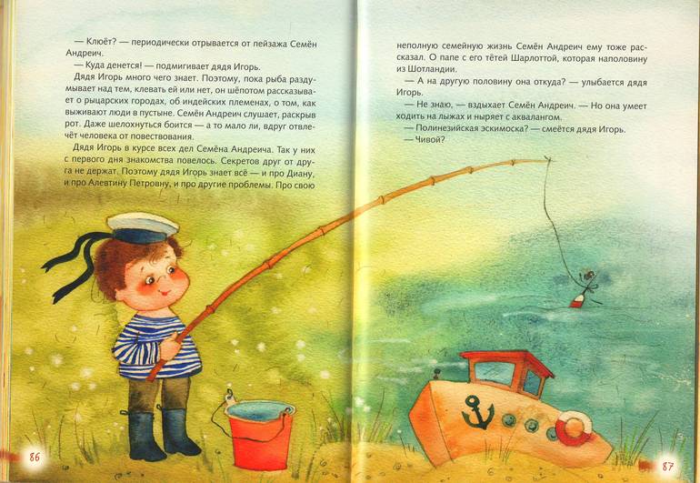 Итак, первая претензия рецензентов к сюжету. У Семёна Андреича неполная семья: он живет с мамой, а у папы новая жена. При этом папа активно участвует в жизни сына. А мама в конце повести тоже находит хорошего и доброго мужчину. Поэтому, ДА, если вы, как родители, категорически против того, что ребенок может иметь представление о такой ситуации в жизни некоторых людей - книгу эту читать не стОит. НО, повесть написана настолько правдиво и искренне, настолько тепло показаны отношения между мамой и сыном, бабушкой, дедушкой и внуком, что мне сложно представить, как она может навредить мировоззрению ребенка.
