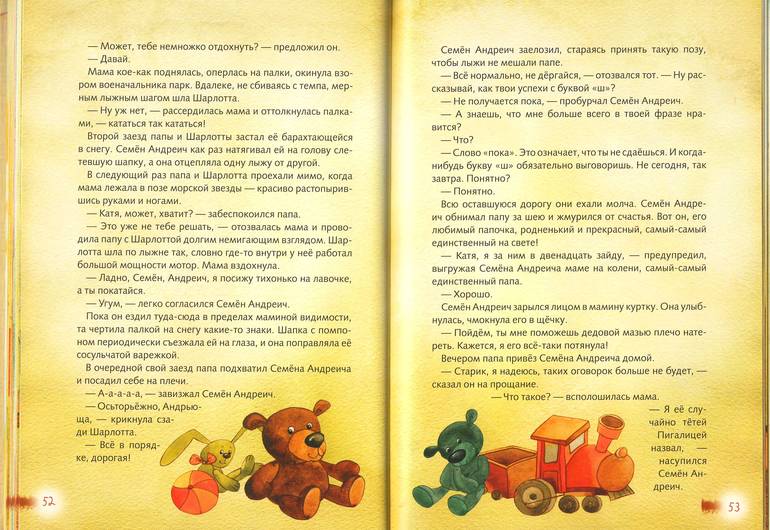 Главный герой повести - Семён Андреич, да-да, так его и называют в семье. Ему только что исполнилось 5 лет, он ходит в детский сад и на занятия с логопедом, потому что не выговаривает букву "Ш" и только-только научился писать, правда пока еще с ошибками)) Он каждый день мечтает и открывает удивительный мир вокруг себя.