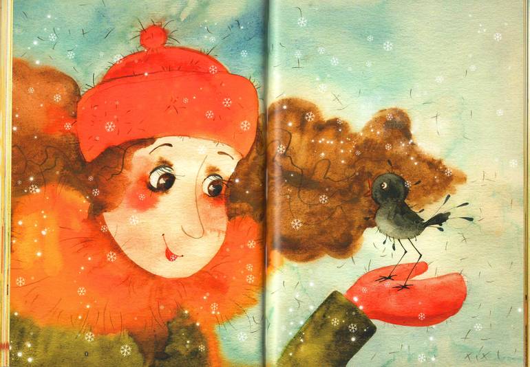 Иллюстрации не повторяют в точности текст, не соответствуют описанию. Даже не буду комментировать. В большей части книг, которые написаны одним автором, а проиллюстрированы другим, иллюстрации не повторяют в точности текст, особенно вид и цвет одежды на героях.