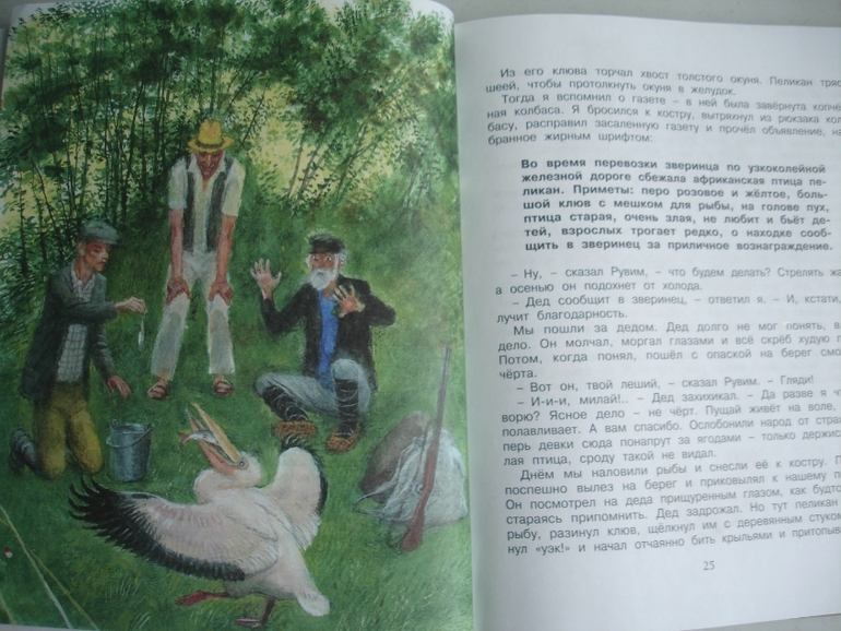 Рассказ "Резиновая лодка" позволяет опять встретиться с "дядей Костей", "дядей Рувимом" и мальчиком, который сопровождает их во всех их путешествиях. Смешной и одновременно трогательный рассказ, как щенок сгрыз пробку на резиновой лодке, был за это наказан, но прощён за необычайную преданность. Этот рассказ сыну не очень понравился из-за вандализма над лодкой, которого он не приемлет :) Но, думаю, мы к нему обязательно вернёмся чуть позже.