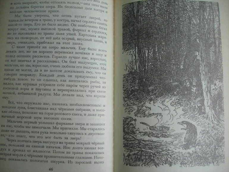 Продолжим о забавных рассказах....После того, как мы с сыном осилили "Кот-ворюга" и "Степан и Фунтик", я вдохновилась и стала искать то, чем в детстве пренебрегала. У родителей дома нашёлся сборник К.Паустовского из серии "Школьная библиотека". Я села читать, но Санька решил, что это тоже ему. Из этой книги мы читаем "Барсучий нос". События происходят с теми же героями и при тех же обстоятельствах - на рыбалке. Герои становятся свидетелями того, как барсук обжигает нос, засунув его в сковородку с жарящейся картошкой, а потом лечит его в расщелине трухлявого пня.