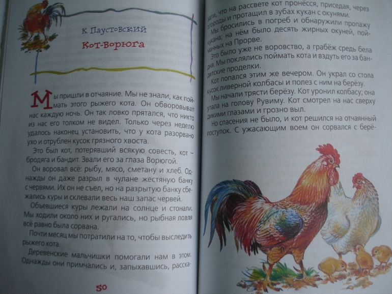 Рассказов Константина Георгиевича здесь всего два - тот самый "Кот-ворюга" и "Степан и Фунтик". Сын не понимает слово "рано", поэтому оба были прочитаны и полюбились безоговорочно. Да, это не самое подходящее чтение для трёхлетки, да, скорее всего он всего не понимает, но суть войны людей с котом и кота с собакой он способен понять. Он смеялся над тем как Фунтика проучил петух, как кот-ворюга гнал петуха. Отсюда Санька "подцепил" словечко "вздуть". Я объяснила, что это значит побить, наказать. Как мы узнали? Санька что-то обиделся на папу и заявил: "Папа, я тебя сейчас вздую!"