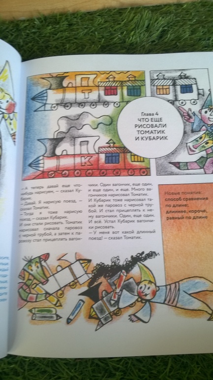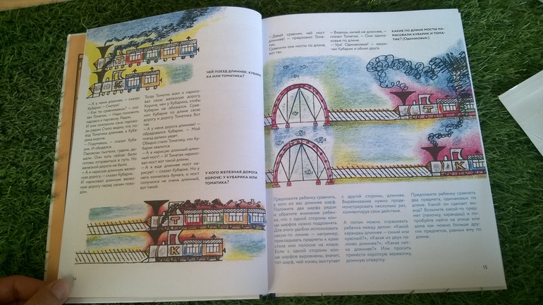 Книга хорошая, иллюстрации качественные. Есть некоторые нюансы с цветопередачей, не везде коричневый сильно отличается от красного, но это не так важно. Я сначала думала, что надо мне сначала знакомиться с главой, а потом уже читать Давиду, так делала в первый раз, но вполне можно ориентироваться по факту. Части для родителей выделены голубым цветом, в рамочку вынесены понятия, которые отрабатывает глава, так что можно быстро сориентироваться. Задания Давид у меня выполнять все равно не любит, а вот поговорить вокруг темы с ним можно.
