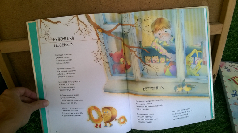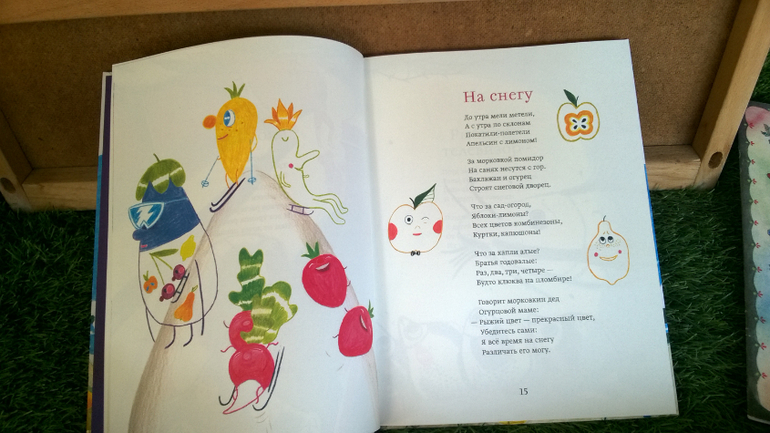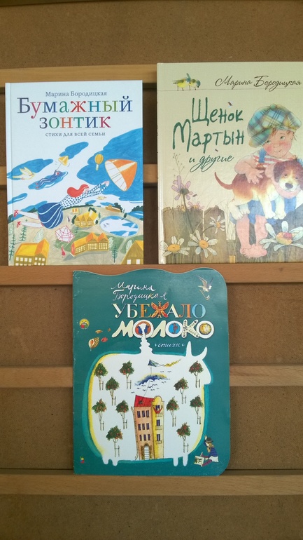 Доставалась Марина Бородицкая, причем аж в трех вариантах, - "Бумажный зонтик", "Щенок Мартын" и "Убежало молоко". Все же насколько верные иллюстрации "делают" книгу! Мои - из "Убежало молоко" Фёдорова, а вот работы Панченко я никак принять не могу, мало того, они у меня отторжение вызвали, так что я даже книжку от ребенка спрятала. Спрашивает меня Давид, какой это овощ, а я ответить не могу. Ну попробуй тут разбери, где кто. "Щенок Мартын" мне показался на возраст постарше, там много стихов о школе.
