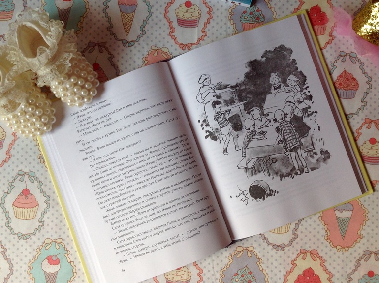 Расскажет как, например, сестрёнка вдвоём с другом Гарри Шалуном втихаря слопали ВЕСЬ бисквитный торт, оставив гостей без сладкого; или как сестрёнка тщательно прячась ото всех сама связала настоящий пестрый шарф для соседа, мистера Какао. ))А ещё какая гордость! Сестрёнка получила самую настоящую 5 в школе! Учительница подарила ей отдельный листок с яркой цифрой "5"