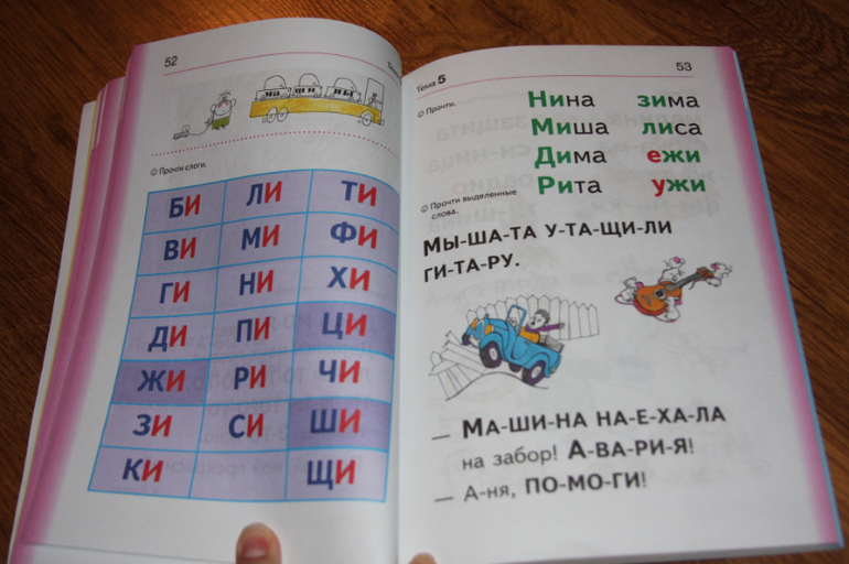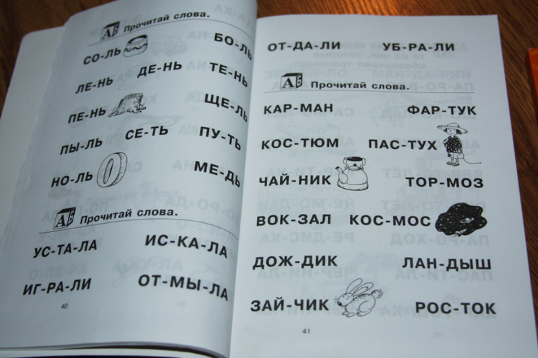 Но нет. Если через трехбуквенные слоги ребенок с азартом прорывался, то вот такая разбивка нам не подошла совсем(