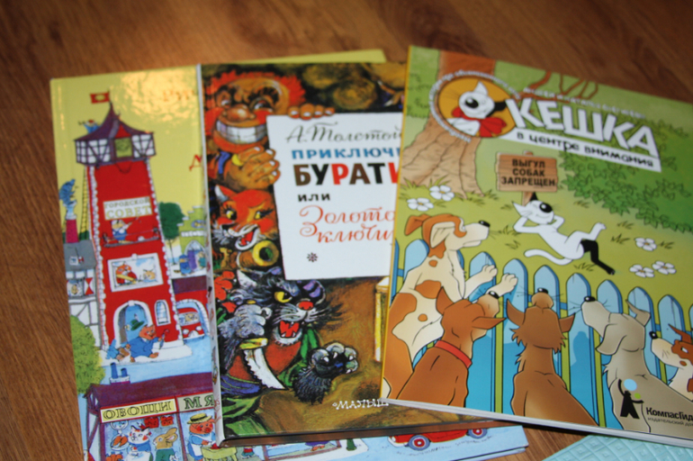 Собственно, эти короткие рассказы и пособия Беденко наши, так сказать, "занятия": очень по чуть-чуть и не в напряг. Составлять дневник самостоятельного чтения не буду, не хочу, чтобы дочь читала "для количества". Пусть для удовольствия. Из того, что сегодня осталось не убранным - Скарри (короткие предложения, тоже можно рекомендовать начинающим читателям), Буратино (часто этот вариант ругают за сокращенность текста и пр, а вот на первое чтение отлично: коротко, крупно и с картинкой), комиксы про Кешку.