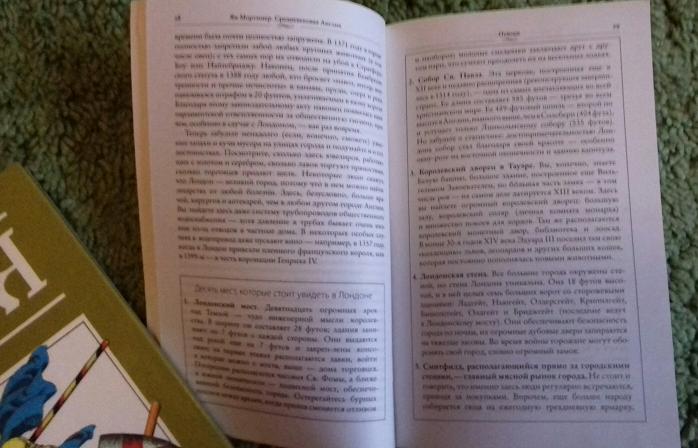 И - "Средневековая Англия" - действительно путеводитель, где рассказывается, кто жил в то время, где, что ели, что пили, во что одевались, чем занимались... Очень интересно. Только 2 минуса: книжка в мягкой обложке и без иллюстраций((