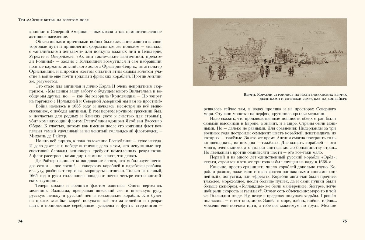 "В этой книге рассказывается о сражениях и битвах. Поэтому и называется она так - «Три майские битвы на золотом поле». Именно о трех битвах, о трех замечательных (каждое - по своему) сражениях я и расскажу. «Майские» они потому, что начались, как нетрудно догадаться, в мае месяце. Закончились, правда, кто когда, одна аж в сентябре. Но все равно пусть будет майской. Так красивее. А почему на золотом поле? Дело в том, что я буду говорить о Золотом Веке Нидерландов, той далекой эпохе, когда казалось, что маленькая страна правит миром.