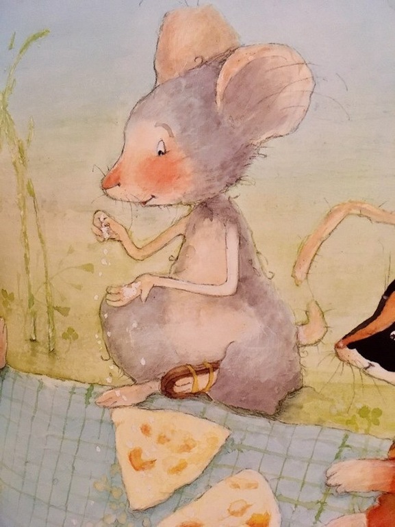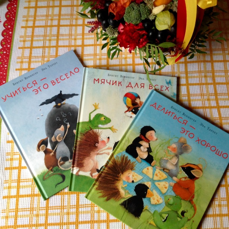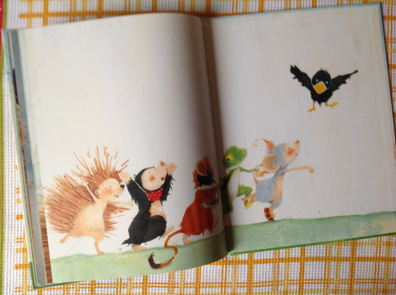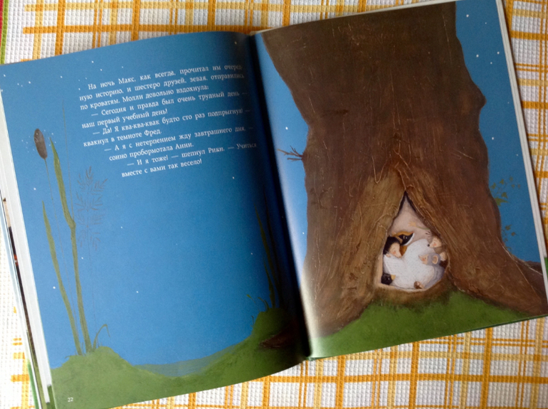 Пока что у нас самая любимая, в принципе из всех книжек! Мышонок Макс умеет читать и писать, а его друзья- Садовая Соня Рики, Ёжик Вилли, Кротик Молли, Лягушонок Фред, и Анни-чёрный дрозд, -нет, но тоже очень захотели научиться. Кроме Лягушонка Фреда, который не понимает " квакой в этом смысл?". Однако сам Фред оказывается превосходным поваром и учит своему мастерству друзей. Вообщем, все пятеро обмениваются опытом и навыками друг друга. Анни становится учителем труда и рисования, Молли учить друзей правильно пользоваться своим нюхом и слухом, это спасёт от врага, и даже Ёжик Вилли, который отважно спасает зверят от лисы. Кстати, ёжик такой симпатичный!!! Очень весёлая история о том как зверята учились читать и писать. В книжке употребляется слово попа, именно это очень веселит моего сына. Говорит, что это самая смешная книжка. Я писала о ней раньше.