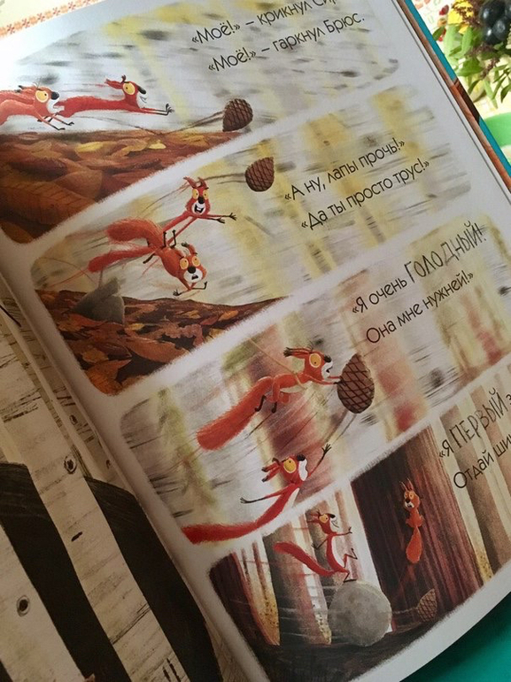 Книга большая, больше А4. Внутри плотный офсет, яркая, очень динамичная и по тексту и по рисункам, они как будто в движении! интересная, мне самой (не говоря уже о сыне) хочется её перечитывать))) Ещё мне очень нравится, что она необычная -то страница перевёрнута, то несколько "кадров" на странице, то текст поскакал)) Вобщем я считаю книжку очень удачной!