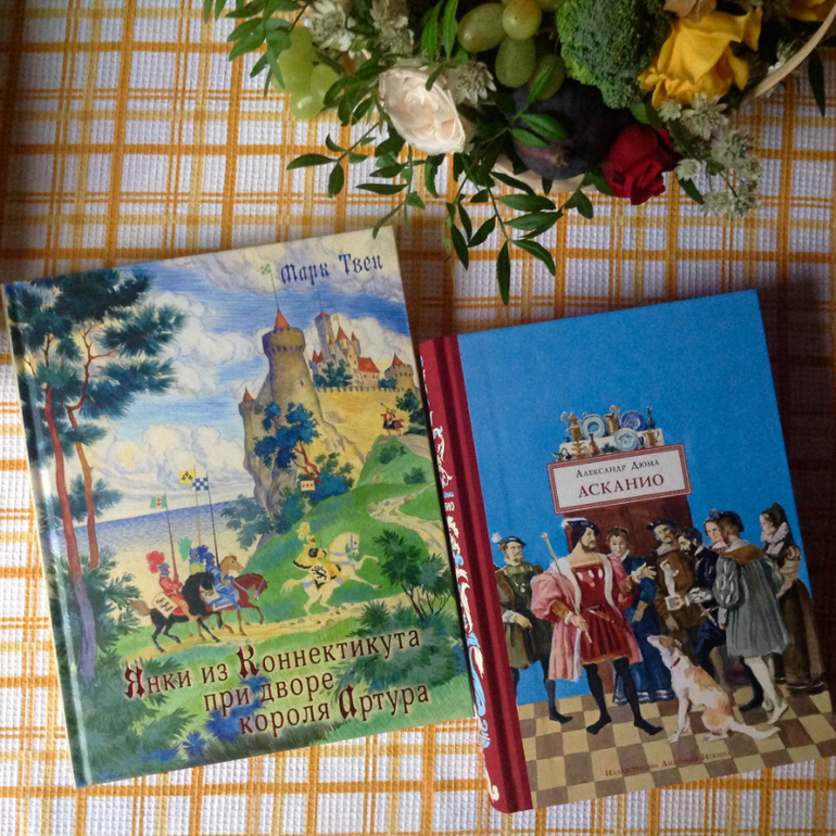"Янки из Коннектикута при дворе короля Артура" брала в библиотеке, начала читать, всё очень понравилось, так что отнесла обратно- Решила, хочу читать свою, красивую! "Асканио" думала-думала... наконец надумала) Обе книжки очень красивые! Цветной срез вообще меня покорил:)