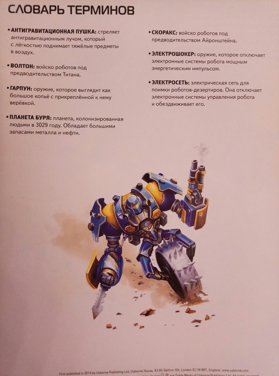 Наклеек много. Всего 23 робота, в конце небольшой словарь терминов.