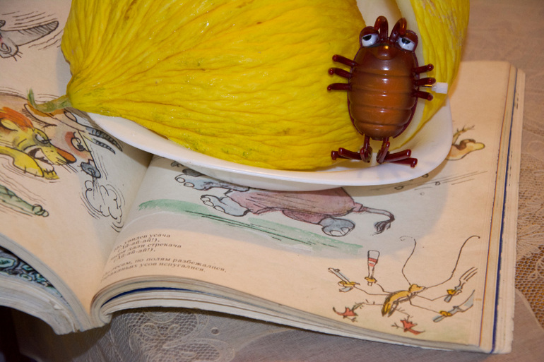 Скандирую я в сотый раз... Чуковский всегда идет легко и непринужденно... Не надо напрягаться искать смысл...Закрываешь глаза, наизусть... Рося и сам знает наизусть, но ему обязательно надо, чтобы я смотрела в текст...