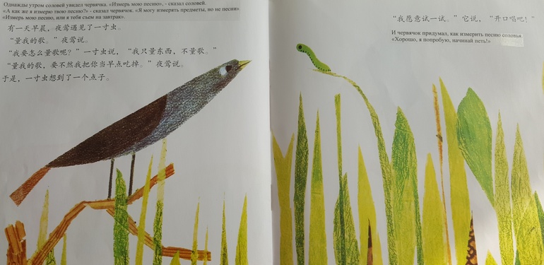 Но тут повстречался соловей, который захотел, чтобы червячок измерил его песню.