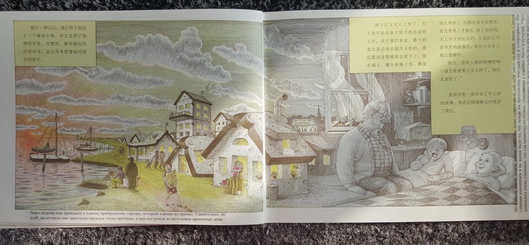 Через неделю они приплыли к одному прибрежному городку, который хорошо их принял. Удивительно, но хлеб, на котором они приплыли оказался очень прочным, и они построили из него временные дома.