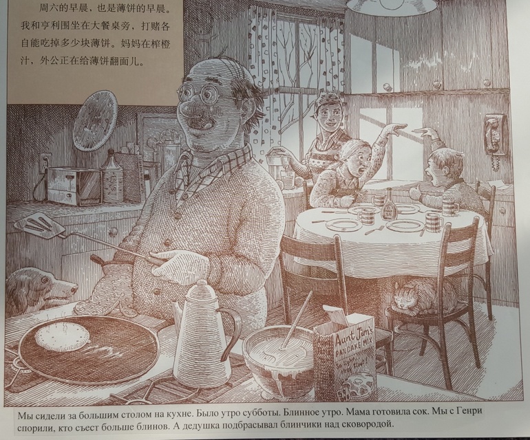 Мы сидели за большим столом на кухне. Было утро субботы. Блинное утро. Мама готовила сок. Мы с Генри спорили, кто съест больше блинов. А дедушка подбрасывал блинчики над сковородой.