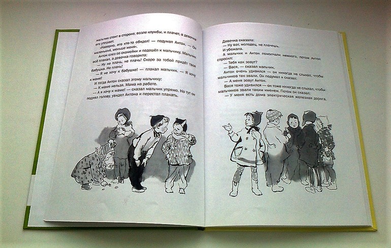 3) Сугубо советских воспитательных моментов вроде "Сейчас дядя милиционер тебя заберет" я не заметила. Подруге, которая читала книгу с сыном, не понравился эпизод в детском саду, когда хулигана в группе называют по фамилии, и когда проходящий мимо человек (учитель) говорит: