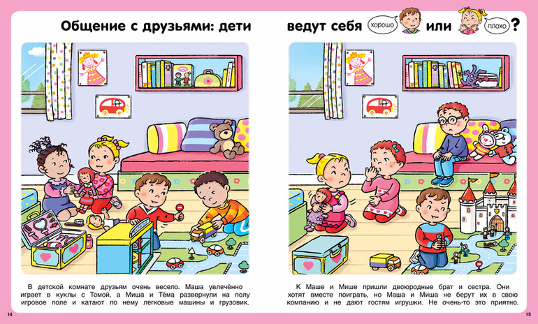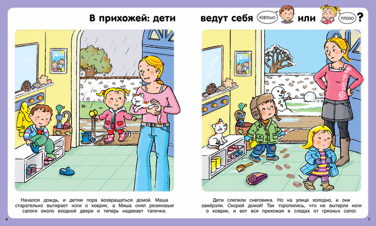 Из этой полезной книги дети узнают, как вести себя на дороге, в лесу, за столом, в магазине, на детской площадке, как принимать гостей, общаться с животными, и многое другое. Рассматривая весёлые картинки, ребенок поймет, "что такое хорошо и что такое плохо".