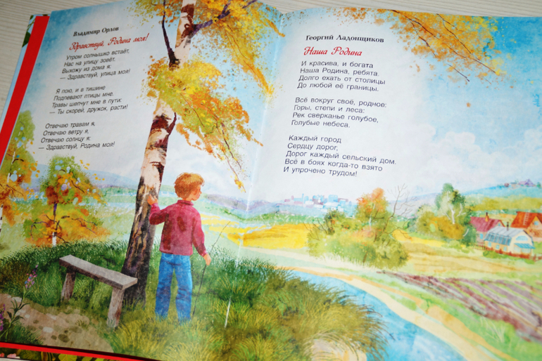 Случайно купила замечательную книгу со стихами о России. В сборнике душевные иллюстрации и просто отличные стихи о нашей Родине. Подборка текстов очень радует, в основном, представлены стихотворения талантливых, но редско печатающихся поэтов: В. Степанов, Г. Ладонщиков, П. Синявский, М. Матусовский, М. Исаковский, Рубцов, Блок, Аксаков, Т. Коти, Огарев, Языков, Плещеев и др. Мы вместе с дочкой с большим удовольствием прочитали книгу, и она даже самостоятельно выбрала некоторые стихи для заучивания наизусть. А уж цена так вообще смешная для такой книги.